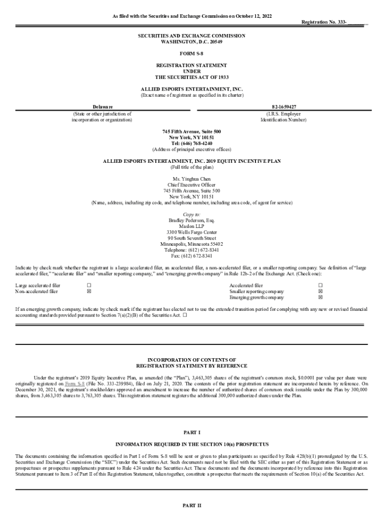 As filed with the Securities and Exchange Commission on October 12, 2022 Registration No. 333 ___ SECURITIES AND EXCHANGE COMMISSION WASHINGTON, D.C. 20549 FORM S8 REGISTRATION STATEMENT UNDER THE