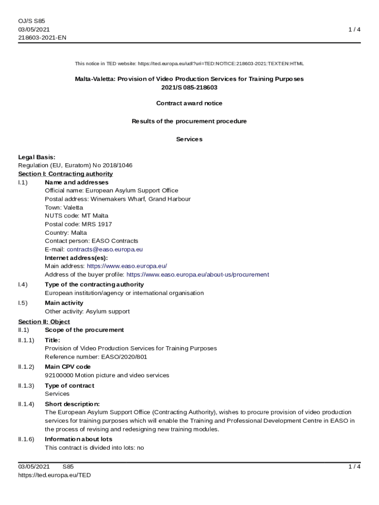 OJ/S S85 03/05/2021 2186032021EN1/4This notice in TED website: https://ted.europa.eu/udl?uriTED:NOTICE:2186032021:TEXT:EN:HTMLMaltaValetta: Provision of Video Production Services for Training Purposes