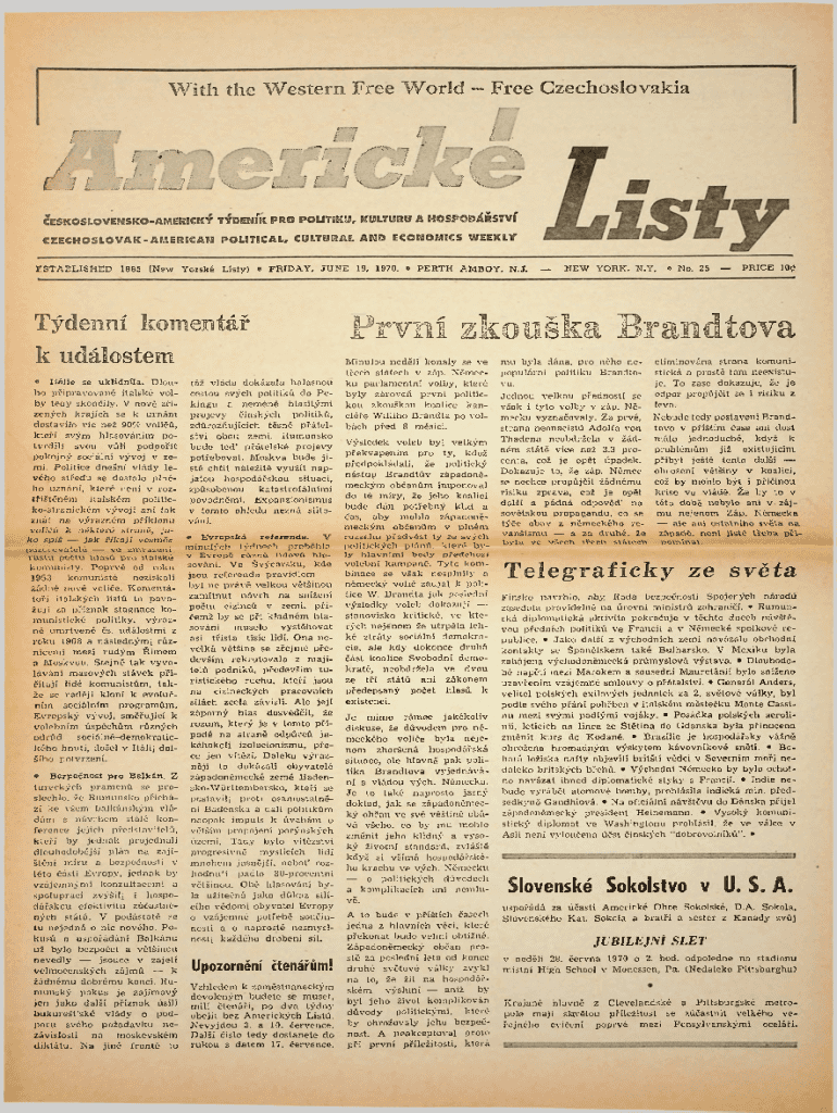 With the Western Free World Free CzechoslovakiaAmerickESKOSLOVENSKOAMERICK TDENK PRO POLITIKU, KULTURU A HOSPODSTVListyCZECHOSLOVAKAMERICAN POLITICAL, CULTURAL AND ECONOMICS WEEKLYESTABLISHED 1865