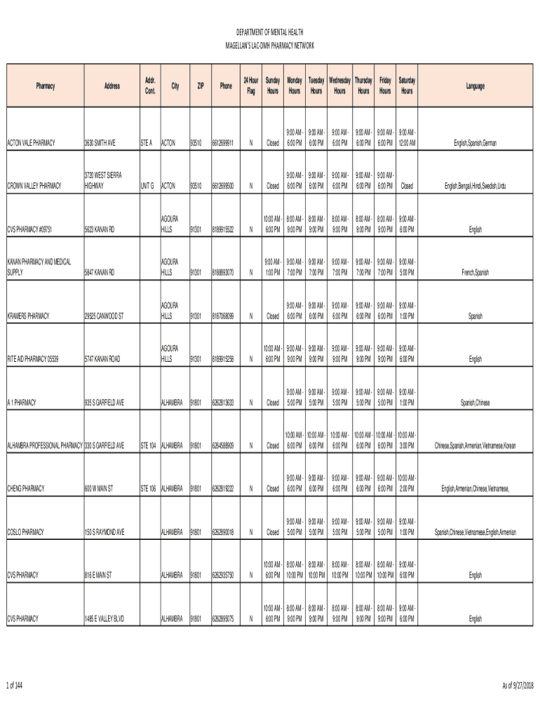 Get the free NETWORK PHARMACIES LIST (LACDMH-MAGELLAN) - file lacounty