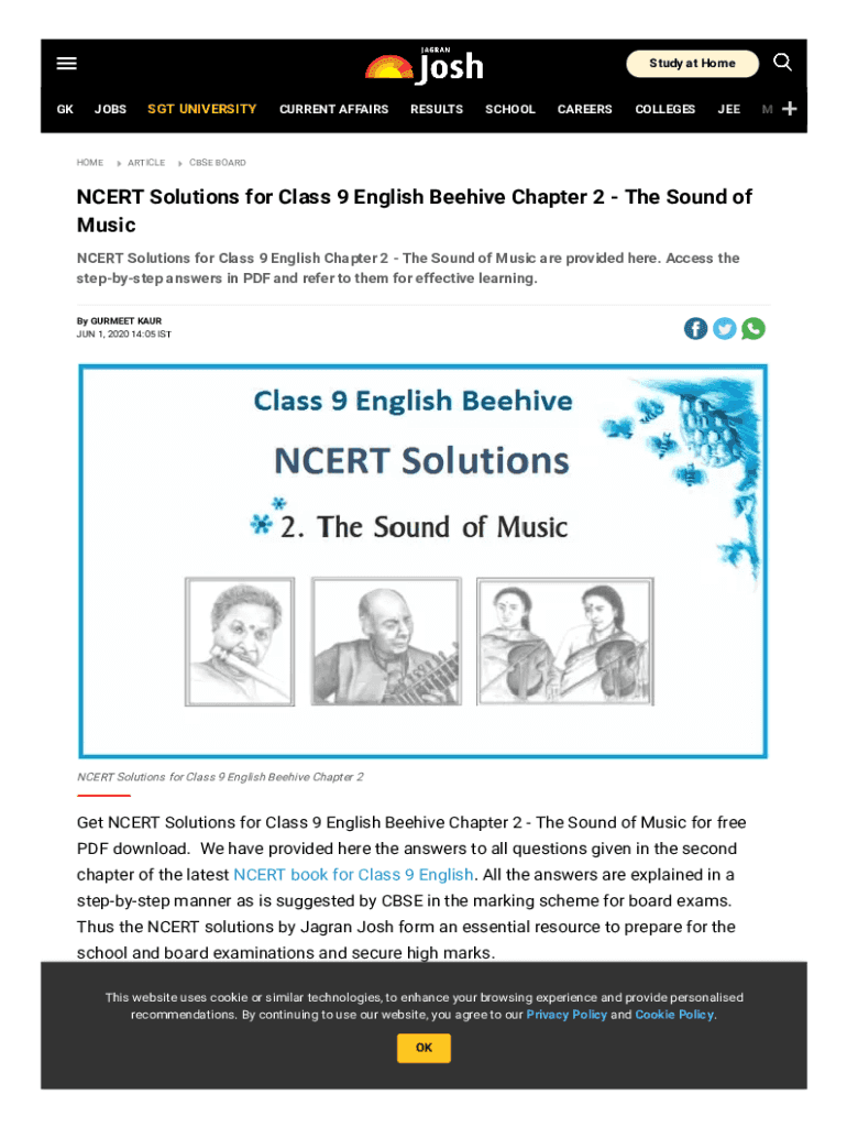 Study at HomeGKJOBSHOMESGT UNIVERSITYARTICLECURRENT AFFAIRSRESULTSSCHOOLCAREERSCOLLEGESJEECBSE BOARDNCERT Solutions for Class 9 English Beehive Chapter 2 The Sound of Music NCERT Solutions for Class