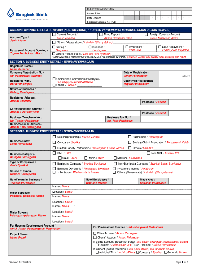 FOR INTERNAL USE ONLY Account No. Date OpenedDDMMYYYYResident/External Ac. (R/E) ACCOUNT OPENING APPLICATION FORM (NONINDIVIDUAL) / BORANG PERMOHONAN MEMBUKA AKAUN (BUKAN INDIVIDU) Account Type /