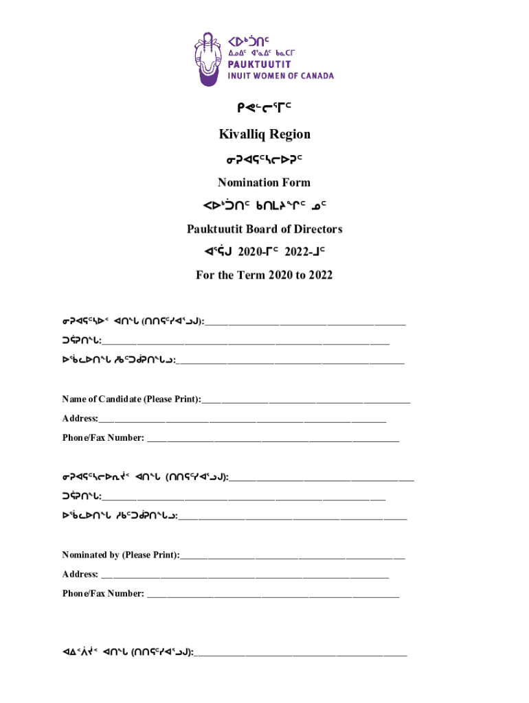 Get the free Kitikmeot Region OPALLJ** - Nomination Form