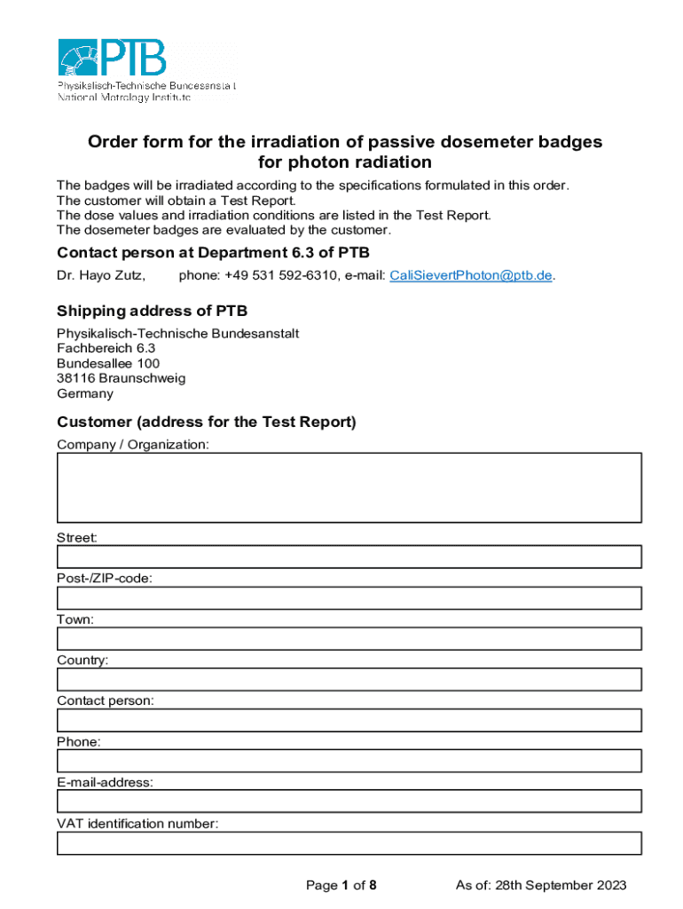 Get the free Order form for the irradiation of passive dosemeter badges ...