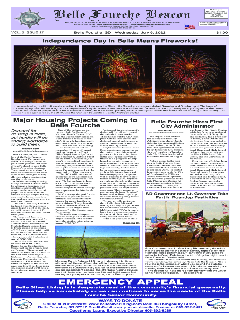 Belle Fourche Beacon PROVIDING LOCAL NEWS FOR BELLE FOURCHE, BUTTE COUNTY and the TRISTATE TRADE AREA*********ECRWSSEDDM**** Postal CustomerPhone: 6057234245 www.bellefourchebeacon.com; email: news@bellefourchebeacon.com;