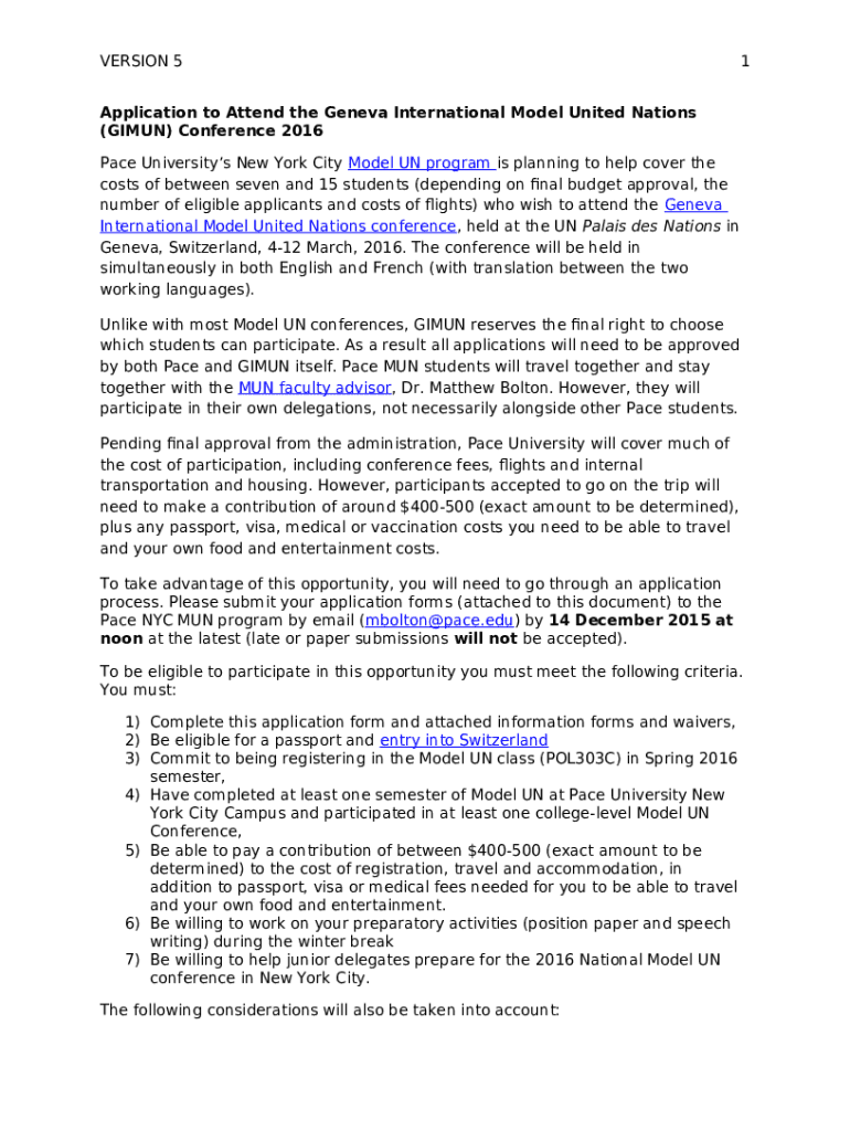 What is Apply to Participate in Pace Delegation to Geneva ... Form?