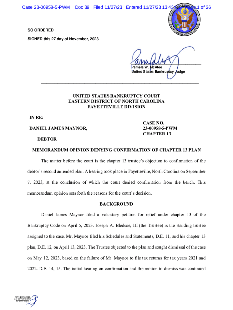 Case 23009585PWMDoc 39 Filed 11/27/23 Entered 11/27/23 13:43:05Page 1 of 26SO ORDERED SIGNED this 27 day of November, 2023.___ Pamela W. McAfee United States Bankruptcy Judge___ UNITED STATES BANKRUPTCY