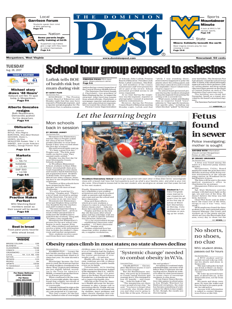 Local Garrison forum Students speak their mind at WVU gathering. Page 9ANation Some parents begin potty training at birth Supporters say babies give a sign with they need to relieve themselves. Page