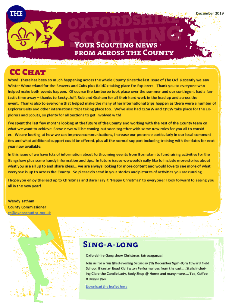 December 2019Wow! There has been so much happening across the whole County since the last issue of The Ox! Recently we saw Winter Wonderland for the Beavers and Cubs plus RaidOx taking place for Explorers.
