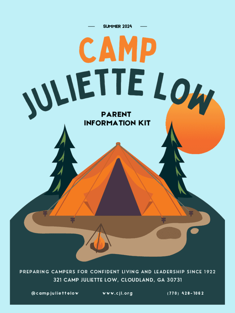 SUMMER 2024JCAMP E T T L E O I L W U PARENT INFORMATION KITPREPARING CAMPERS FOR CONFIDENT LIVING AND LEADERSHIP SINCE 1922321 CAMP JULIETTE LOW, CLOUDLAND, GA 30731 @campjuliettelowwww.cjl.org(770)