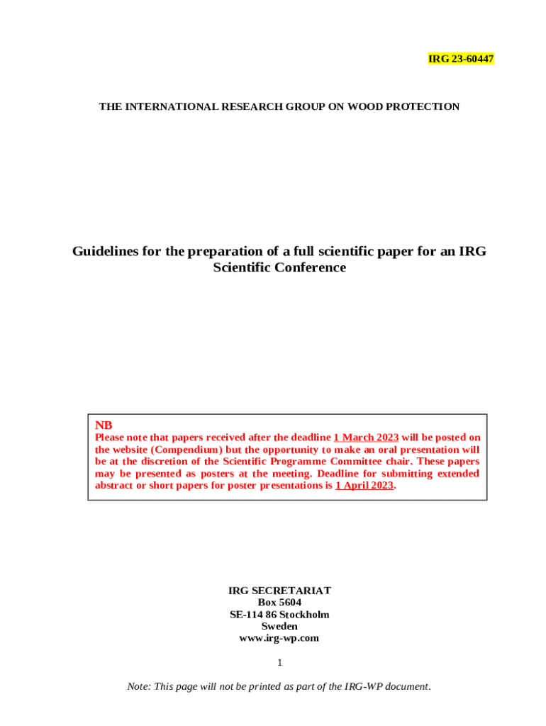 The The International Research Group On Wood Preservation is a fillable form in MS Word extension required to be submitted to the relevant address to provide certain info. It must be completed and signed, which may be done in hard copy, or with the help of a particular solution such as PDFfiller. It helps to complete any PDF or Word document right in the web, customize it according to your needs and put a legally-binding electronic signature. Right away after completion, you can easily send the The International Research Group On Wood Preservation to the appropriate person, or multiple ones via email or fax. The blank is printable too from PDFfiller feature and options proposed for printing out adjustment. Both in electronic and physical appearance, your form should have a clean and professional look. You can also save it as the template for further use, there's no need to create a new file from the beginning. Just edit the ready form.