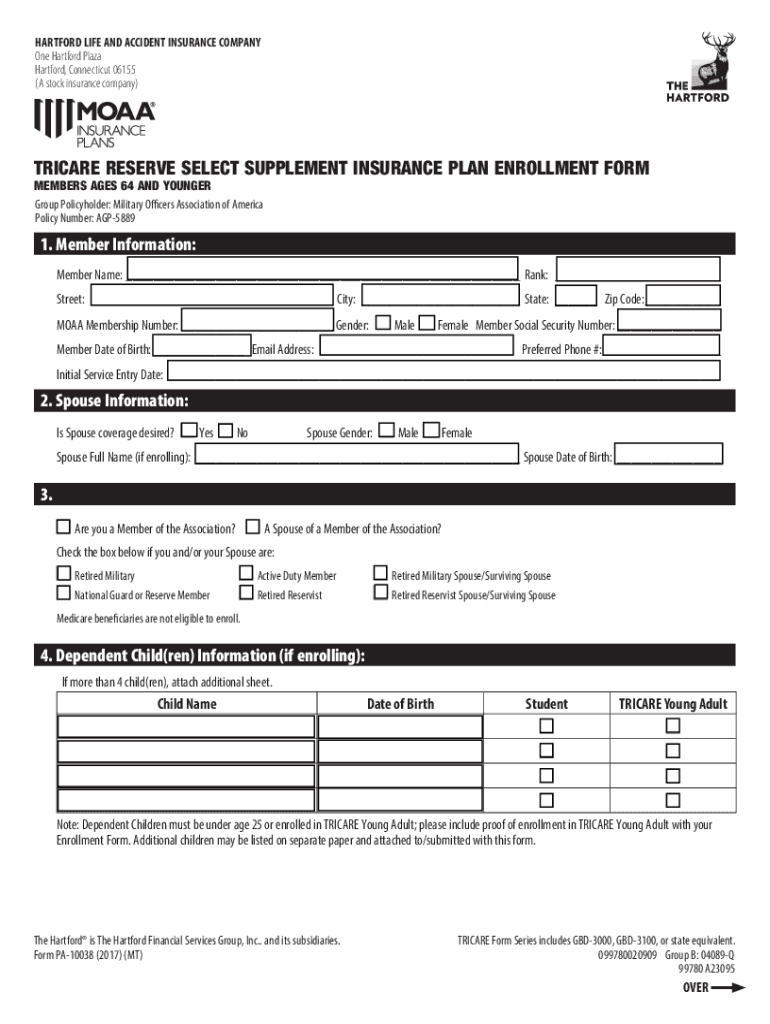 (A stock insurance company)TRICARE RESERVE SELECT SUPPLEMENT INSURANCE PLAN ENROLLMENT FORM