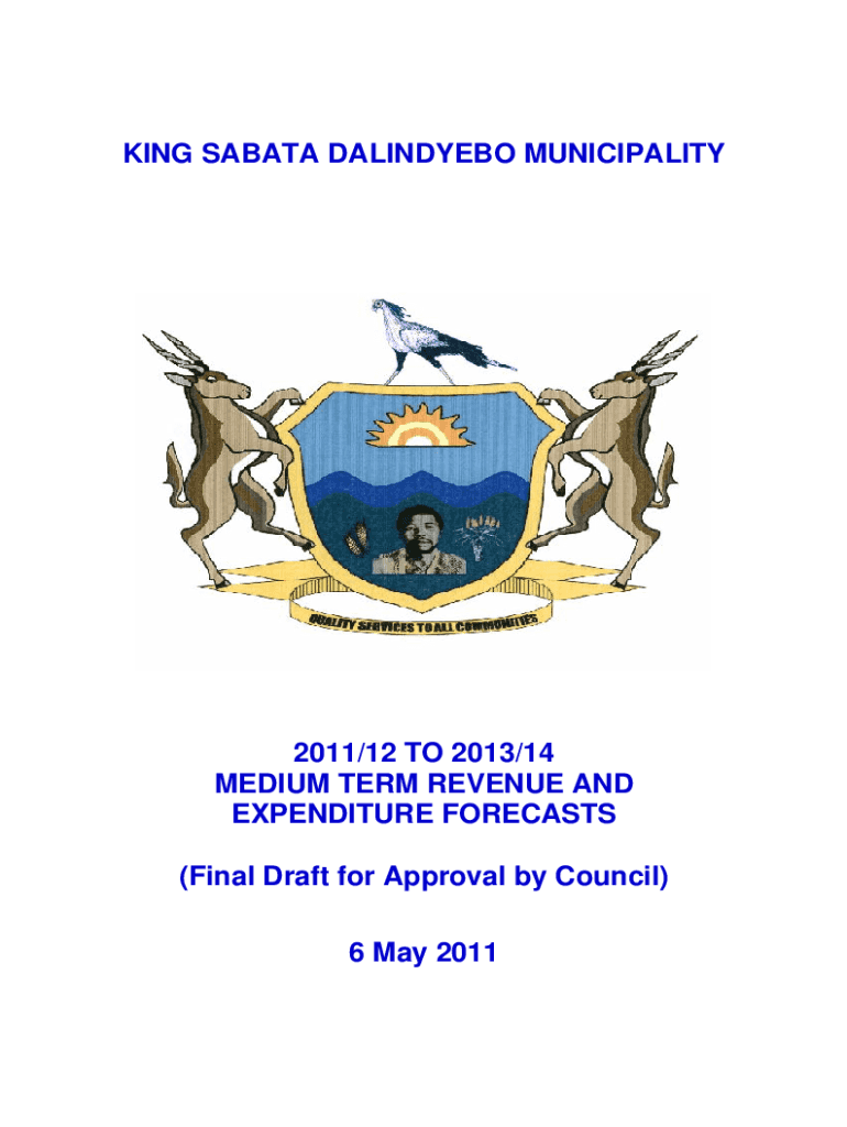 KING SABATA DALINDYEBO MUNICIPALITY2011/12 TO 2013/14 MEDIUM TERM REVENUE AND EXPENDITURE FORECASTS (Final Draft for Approval by Council) 6 May 2011King Sabata Dalindyebo Local Municipality 2011/12