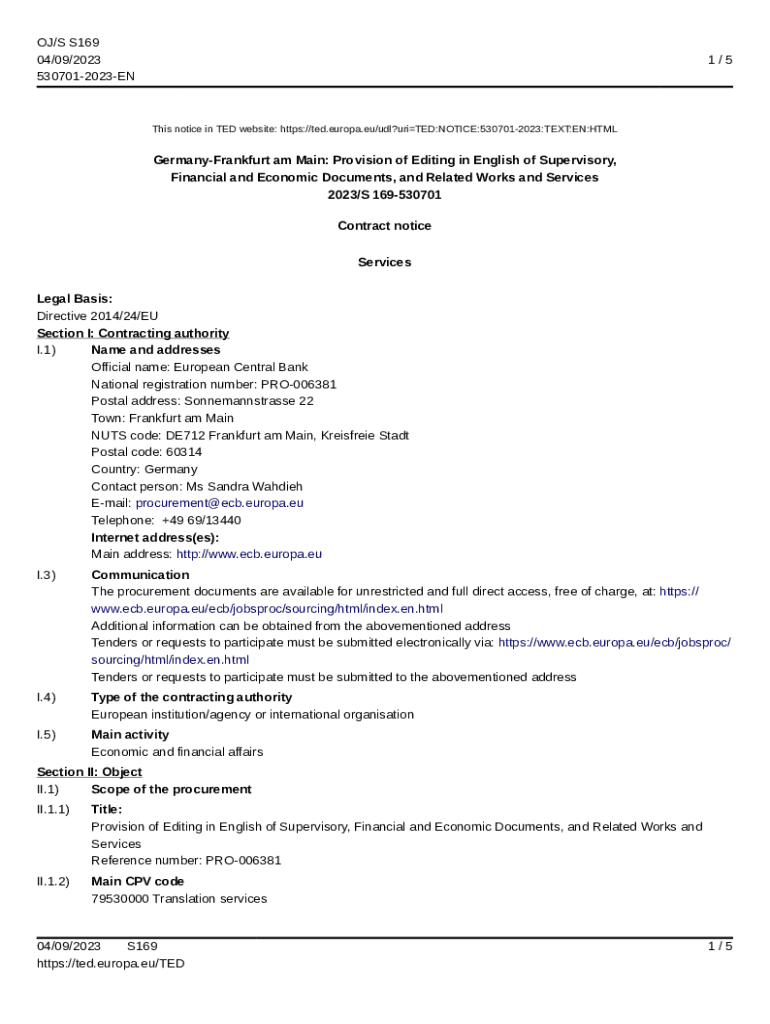 OJ/S S169 04/09/2023 5307012023EN1/5This notice in TED website: https://ted.europa.eu/udl?uriTED:NOTICE:5307012023:TEXT:EN:HTMLGermanyFrankfurt am Main: Provision of Editing in English of Supervisory,