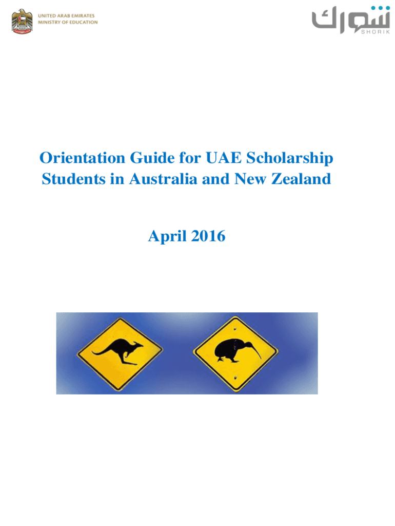 Orientation Guide for UAE Scholarship Students in Australia and New ZealandApril 2016UAE Cultural Attach in Canberra The Ministry of Education / Higher Education Affairs, through the UAE Cultural