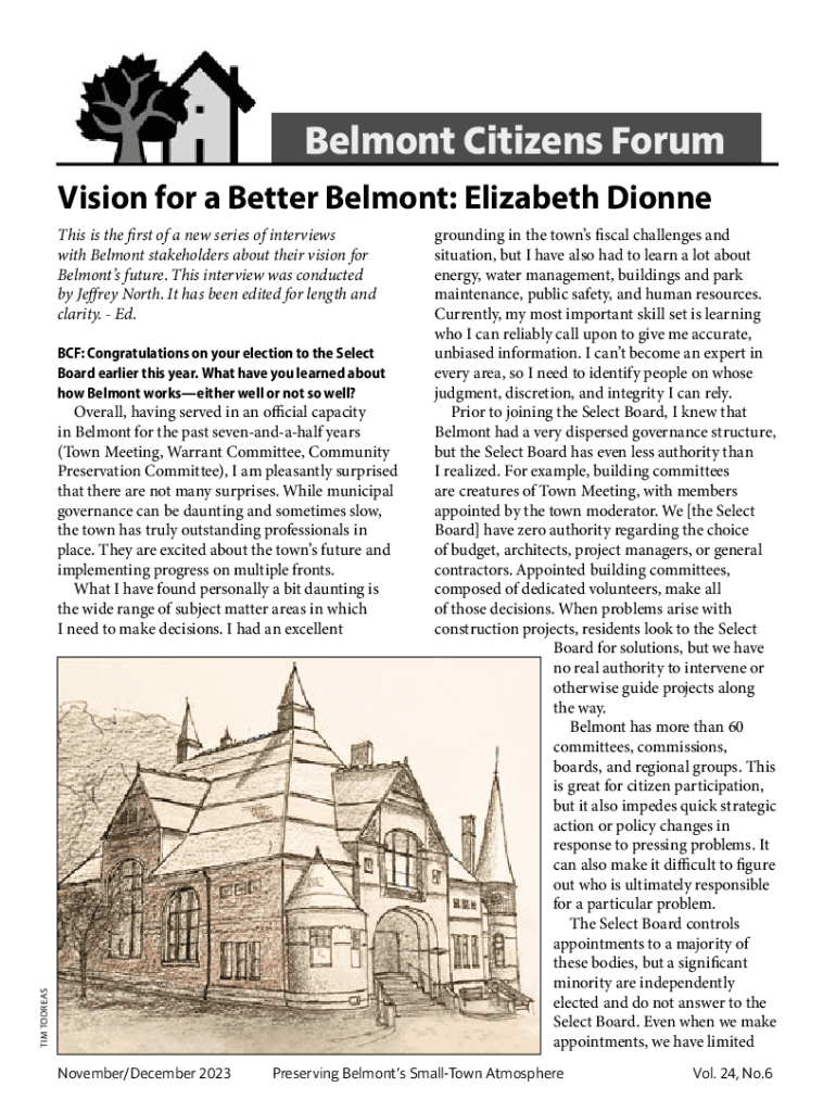 Belmont Citizens Forum Vision for a Better Belmont: Elizabeth Dionne This is the first of a new series of interviews with Belmont stakeholders about their vision for Belmonts future. This interview