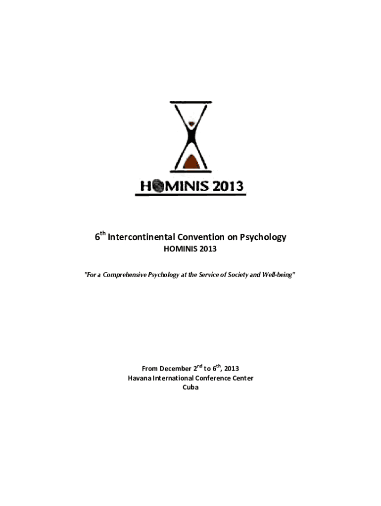 6th Intercontinental Convention on Psychology HOMINIS 2013 \"For a Comprehensive Psychology at the Service of Society and Wellbeing\"From December 2nd to 6th, 2013 Havana International Conference