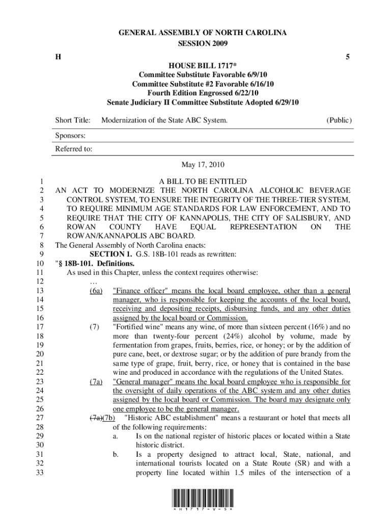 GENERAL ASSEMBLY OF NORTH CAROLINA SESSION 2009 H5 HOUSE BILL 1717* Committee Substitute Favorable 6/9/10 Committee Substitute #2 Favorable 6/16/10 Fourth Edition Engrossed 6/22/10 Senate Judiciary