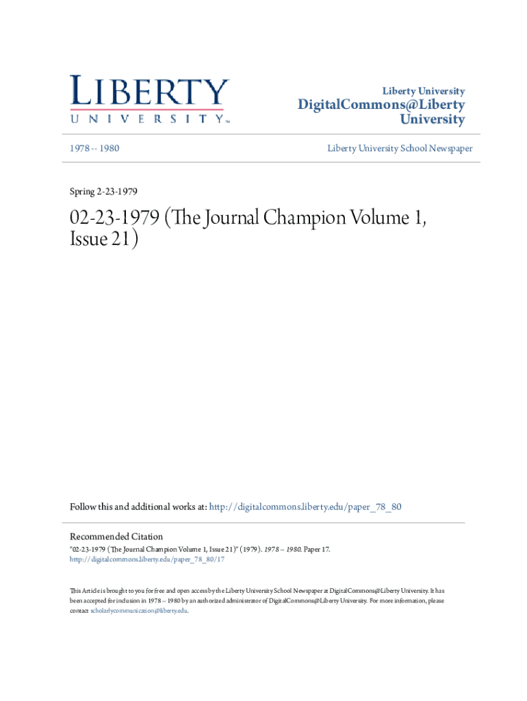 Liberty UniversityDigitalCommons@Liberty University 1978 1980Liberty University School NewspaperSpring 223197902231979 (The Journal Champion Volume 1, Issue 21)Follow this and additional works at: