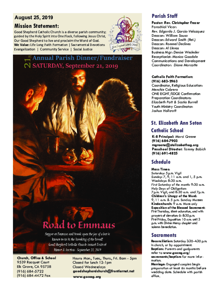 August 25, 2019Parish StaffMission Statement:Pastor: Rev. Christopher Fraser