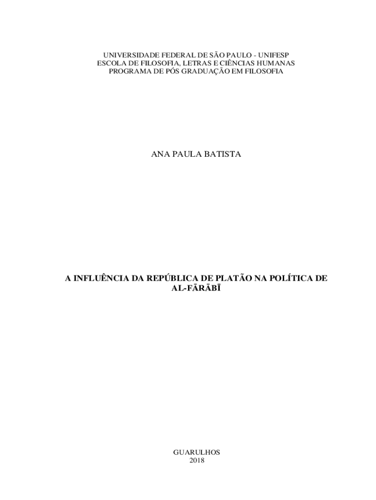 UNIVERSIDADE FEDERAL DE SO PAULO UNIFESP ESCOLA DE FILOSOFIA, LETRAS E CINCIAS HUMANAS PROGRAMA DE PS GRADUAO EM FILOSOFIAANA PAULA BATISTAA INFLUNCIA DA REPBLICA DE PLATO NA POLTICA DE ALFRBGUARULHOS