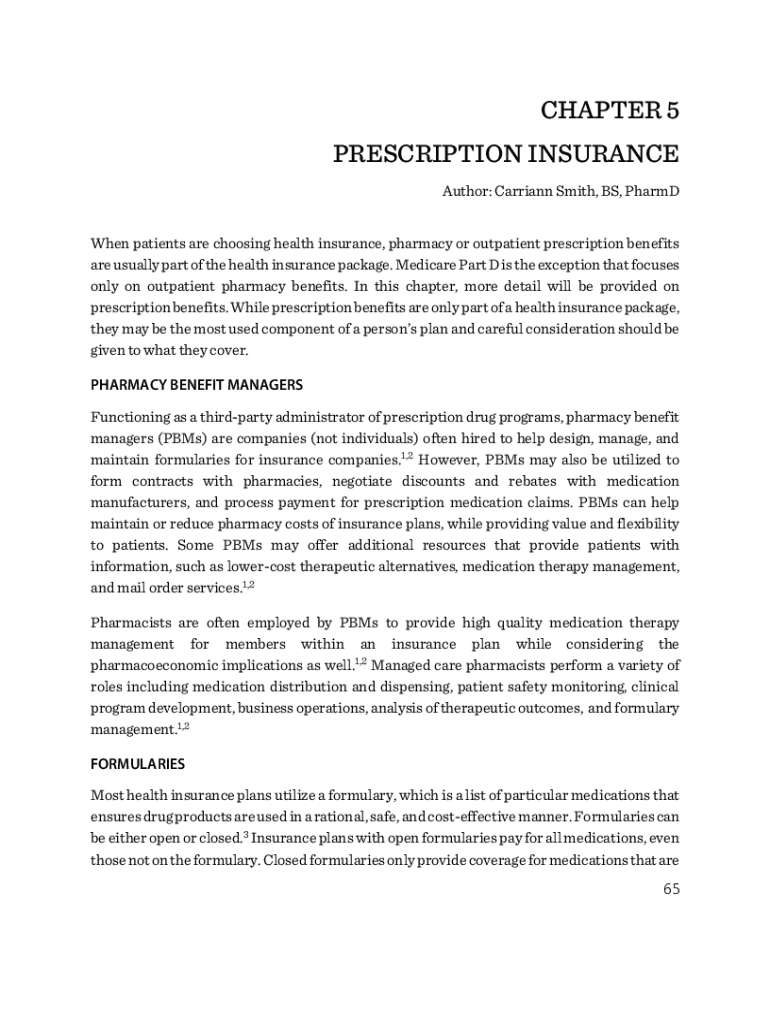 CHAPTER 5 PRESCRIPTION INSURANCE Author: Carriann Smith, BS, PharmD When patients are choosing health insurance, pharmacy or outpatient prescription benefits are usually part of the health insurance