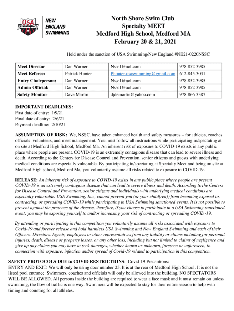 Held under the sanction of USA Swimming/New England #NE210220NSSC
