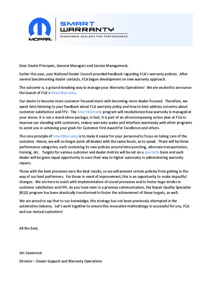 Dear Dealer Principals, General Managers and Service Management,