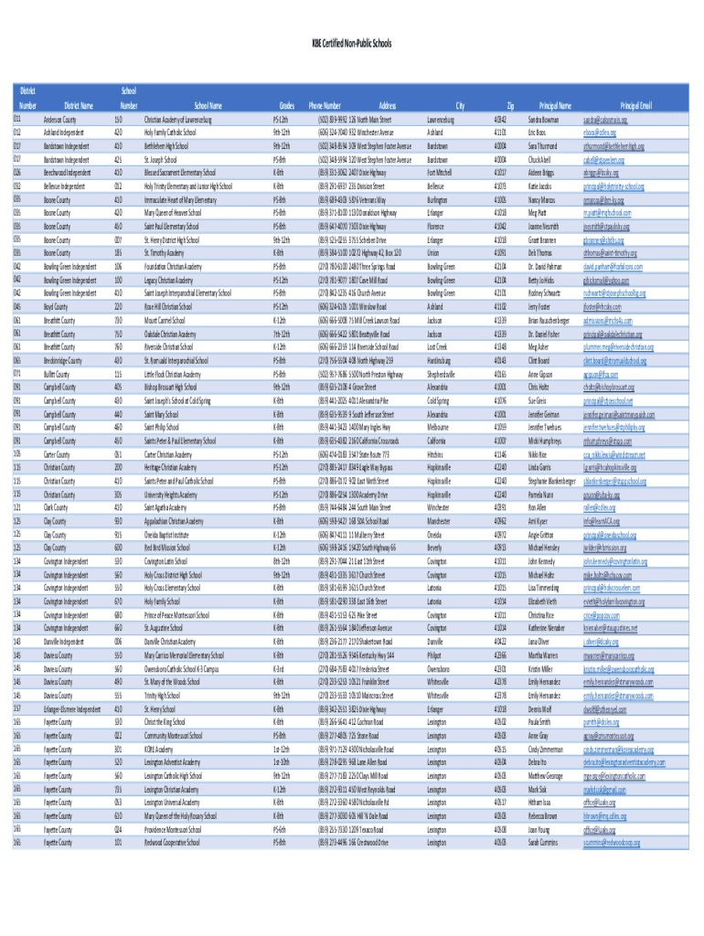 KBE Certified Nonpublic SchoolsDistrict
