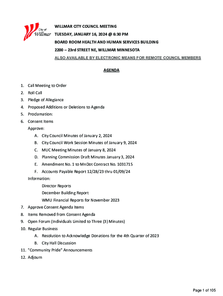 Get the free Willmar council to continue city hall discussion Jan. 16