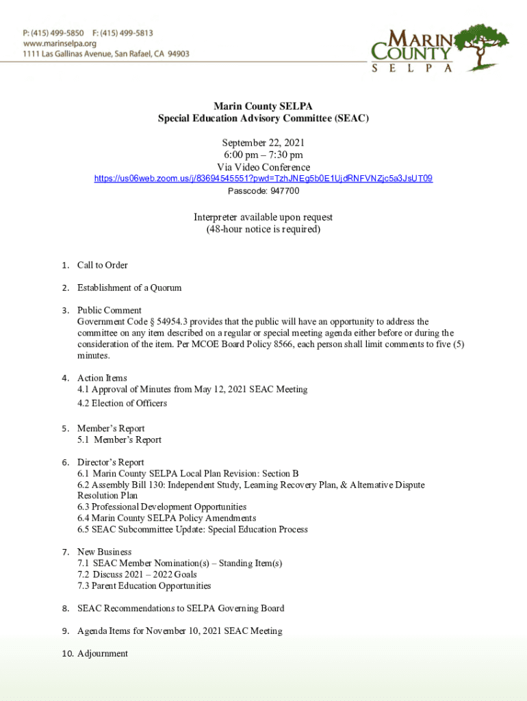 Submit the application form and supporting documents to the designated office or department in Marin County responsible for special education.