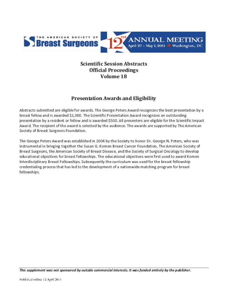 Scientific Session Abstracts Official Proceedings Volume 18Presentation Awards and Eligibility Abstracts submitted are eligible for awards. The George Peters Award recognizes the best presentation