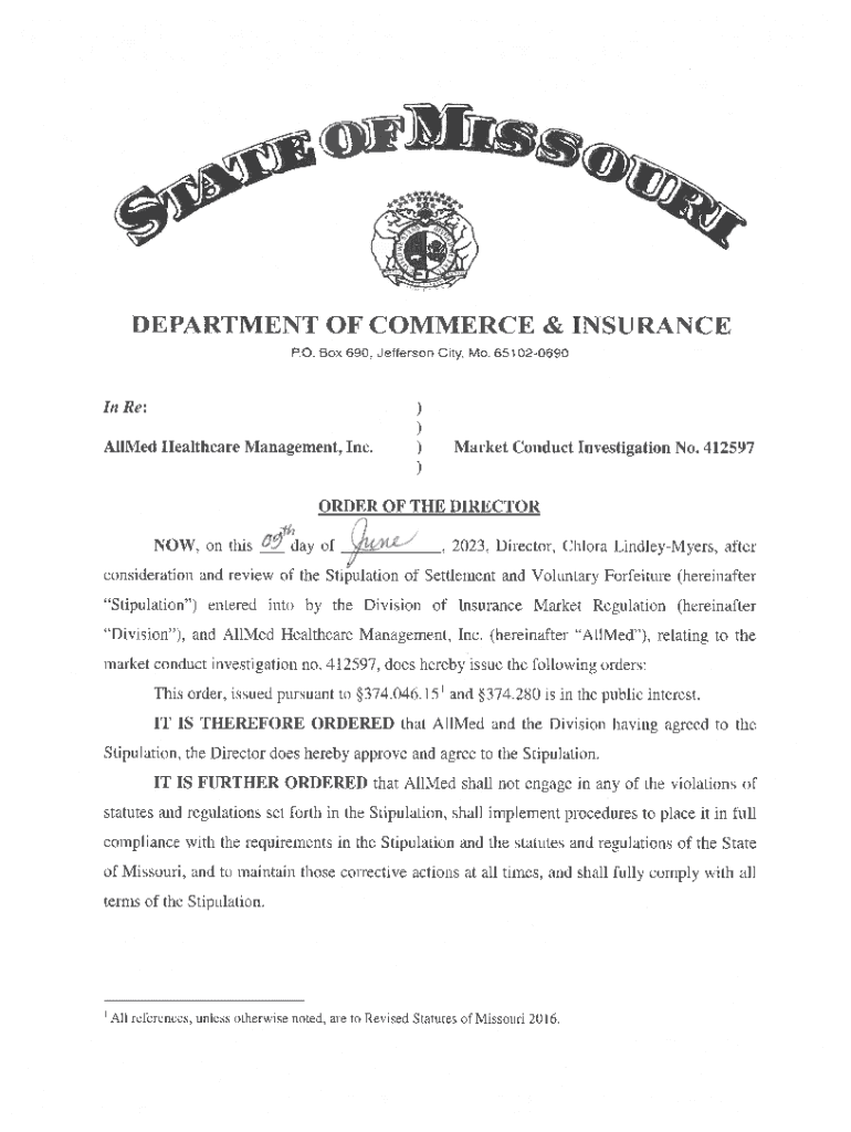 )Market Conduct Investigation No. 412597ORDER OF THE DIRECTOR, #NOW, on this