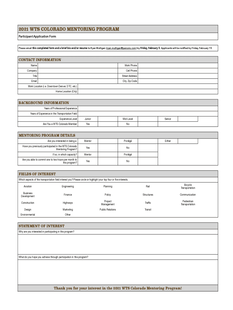 Please email this completed form and a brief bio and/or resume to Ryan Mulligan (ryan.mulligan@parsons.com) by Friday, February 5.