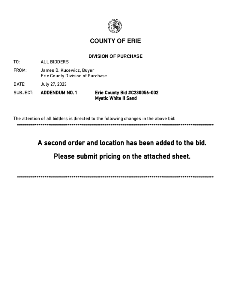 Erie County Division of PurchaseD ATE:July 27, 2023SUBJECT:ADDENDUM NO. 1Erie County Bid #C230056002