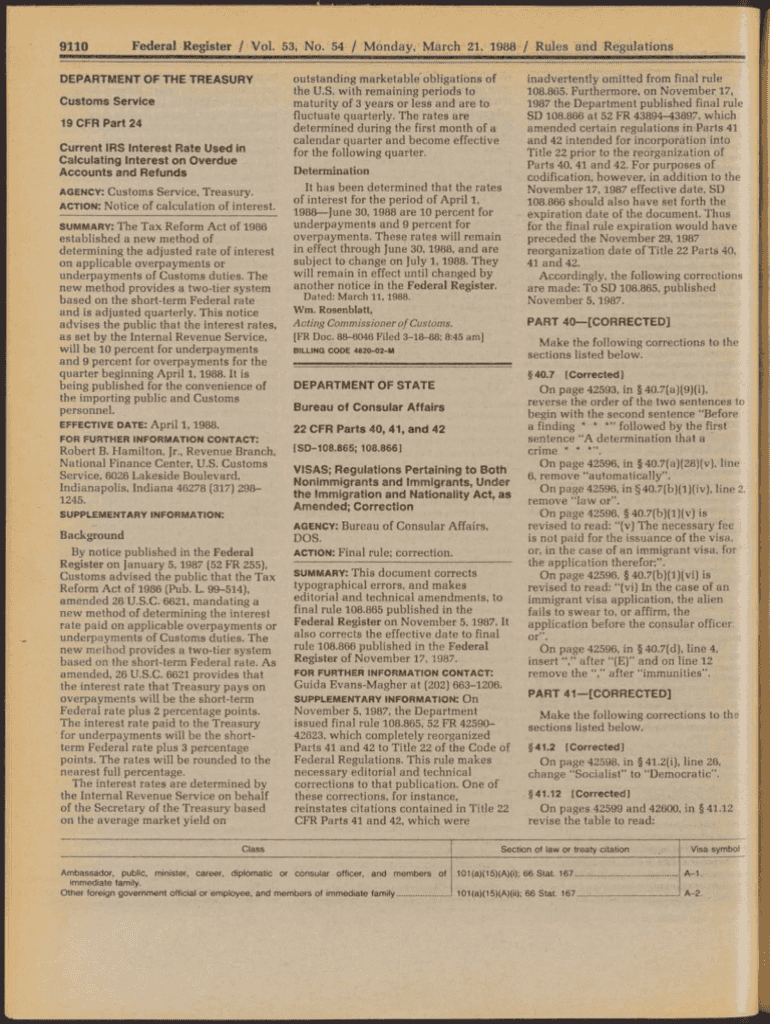 9110F ed era R e.g. sister / Vol. 53, No. 54 / Monday, March 21, 1988 / Rules and RegulationsDEPARTMENT OF THE TREASURY