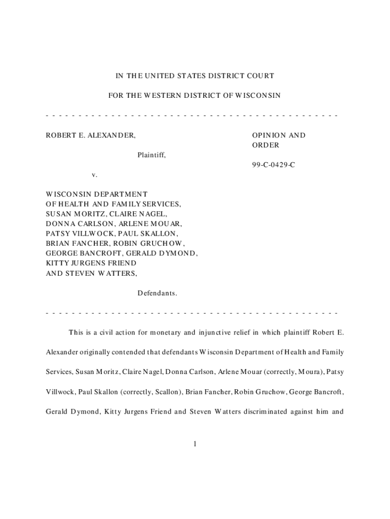 Edit your alexander v wisconsin department form online