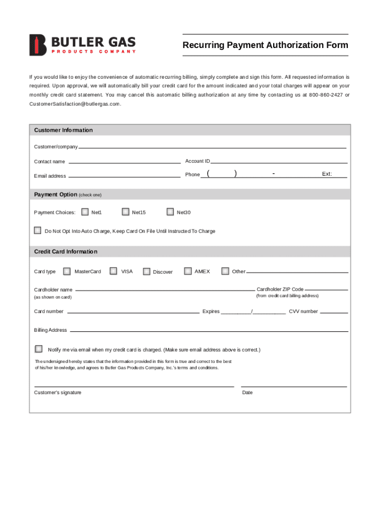 If you would like to enjoy the convenience of automatic recurring billing, simply complete and sign this form. All requested information is
