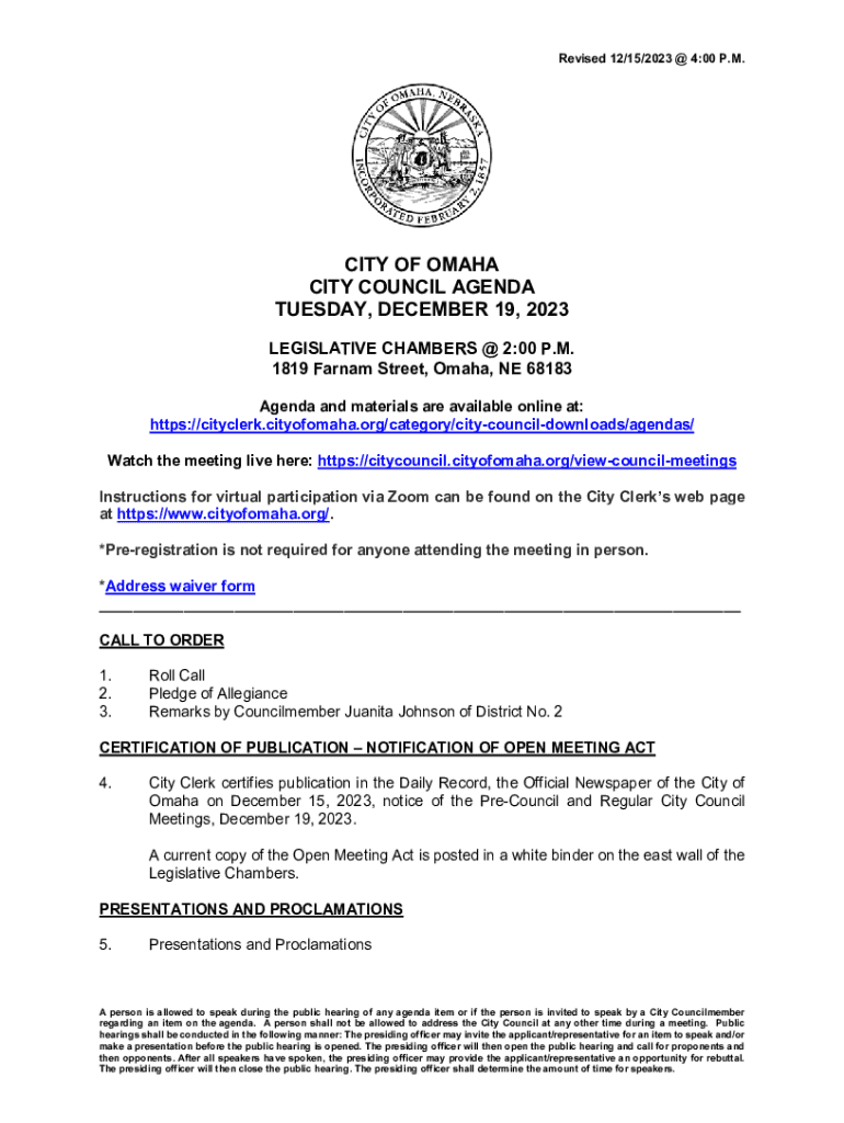 Revised 12/15/2023 @ 4:00 P.M.CITY OF OMAHA