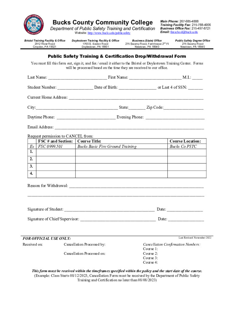 Get the free Bucks C.C.C. - Department of Public Safety Training & ...