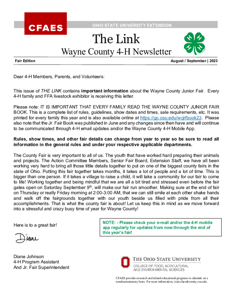 Fair Edition August / September | 2023Dear 4H Members, Parents, and Volunteers: