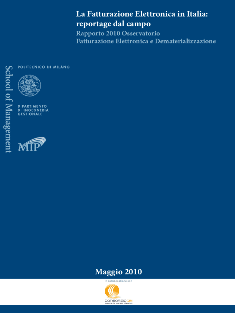 La Fatturazione Elettronica in Italia: reportage dal campoRapporto 2010 Osservatorio Fatturazione Elettronica e DematerializzazioneMaggio 2010 In collaborazione conCopyright e utilizzo dei contenuti