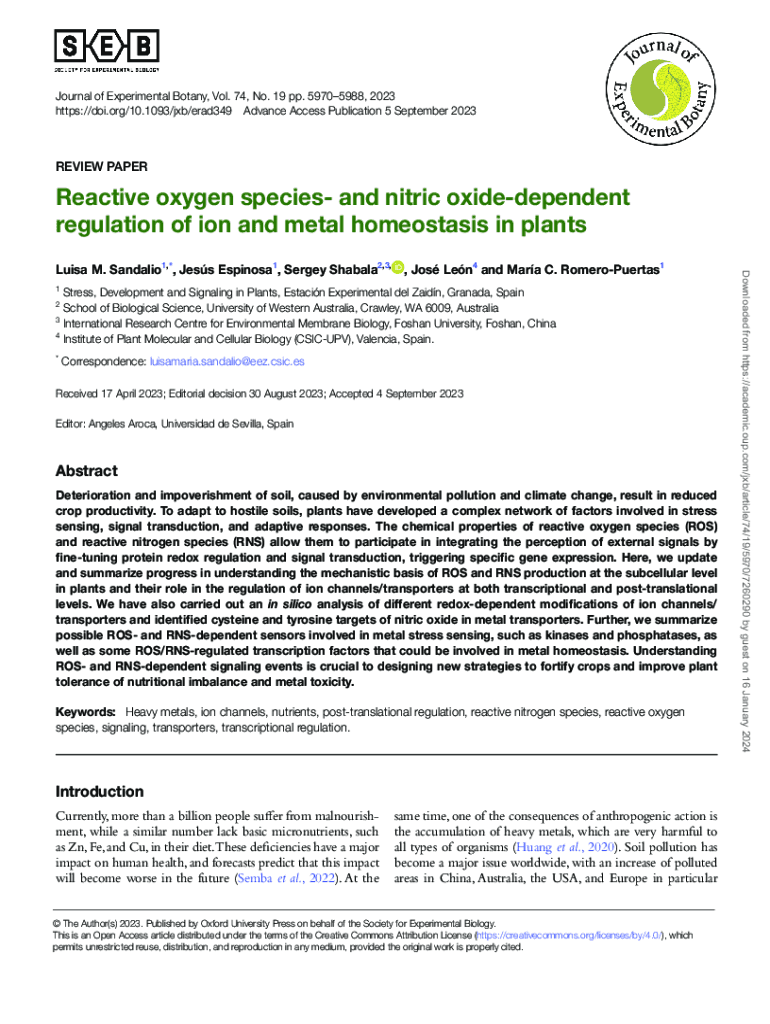 https://doi.org/10.1093/jxb/erad349 Advance Access Publication 5 September 2023REVIEW PAPERReactive oxygen species and nitric oxide