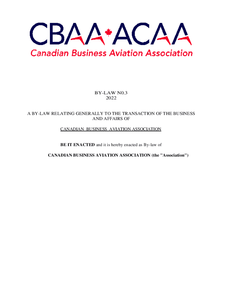CANADIAN BUSINESS AVIATION ASSOCIATION IT ENACTED, and it is hereby enacted as Bylaw of