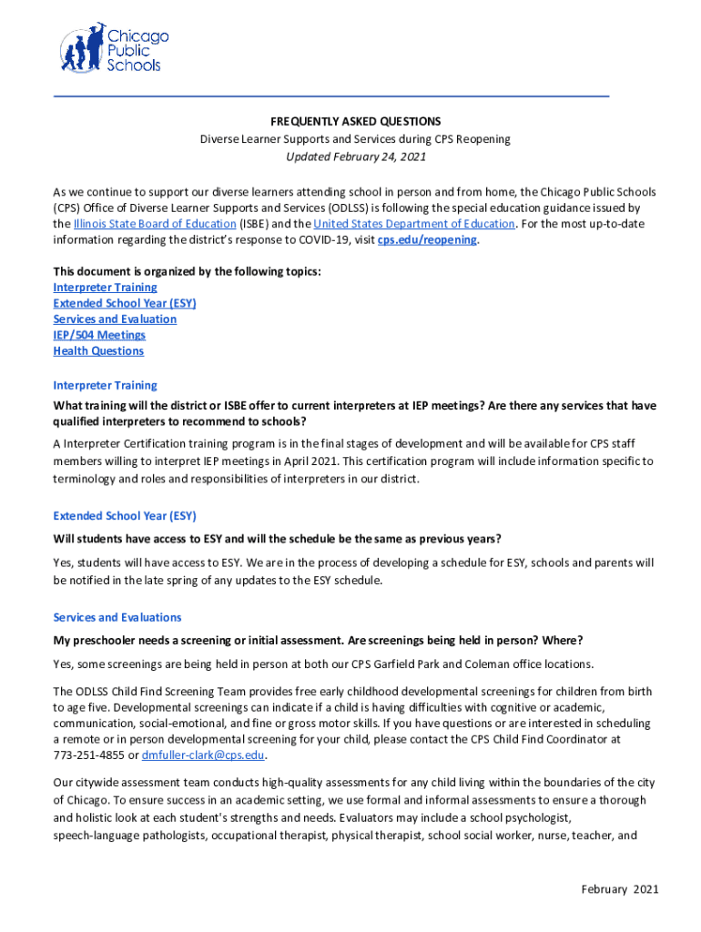 Diverse Learner Supports and Services during CPS Reopening