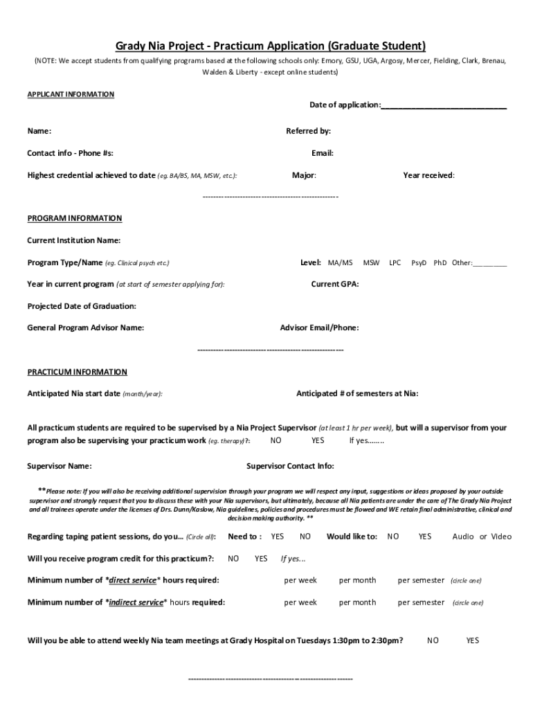 Get the free Grady Nia Project - Practicum Application (Graduate Student) - med emory