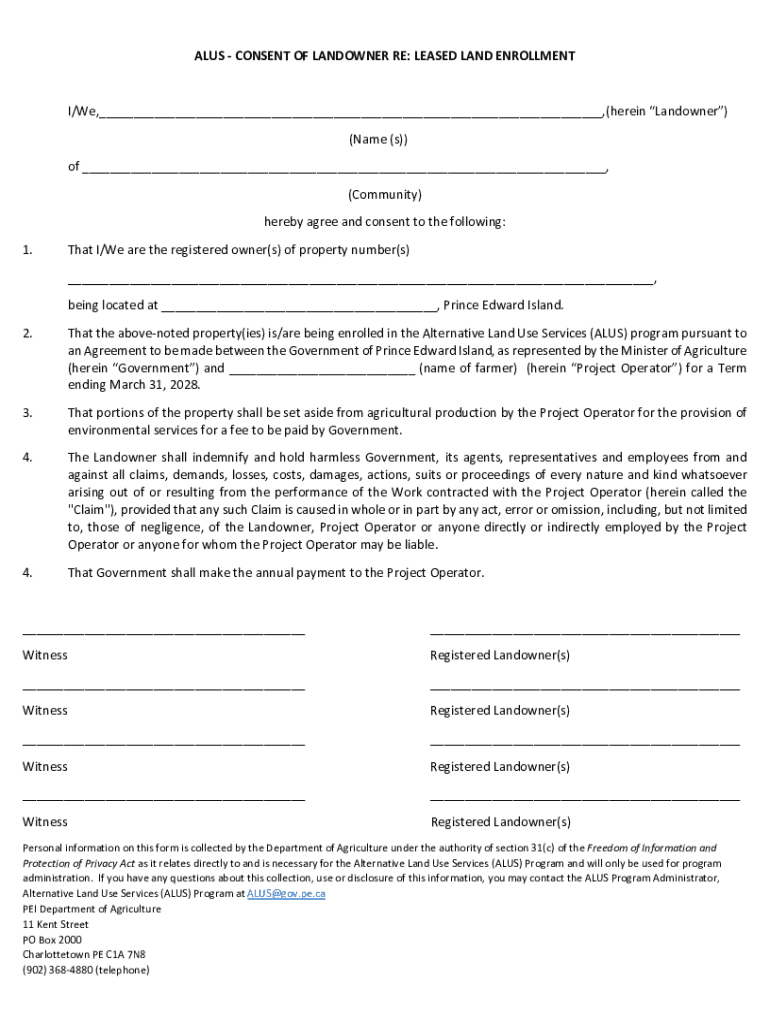 Get the free alusconsent of landowner re: leased land enrollment