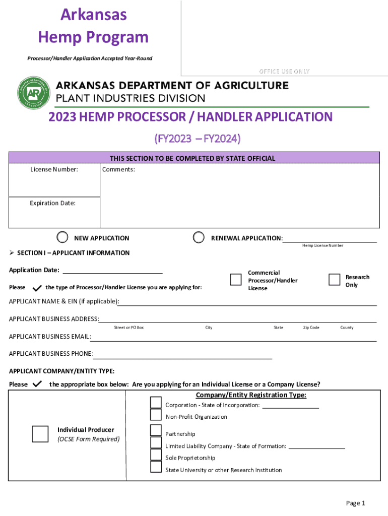 The Arkansas hemp production plan can be filled out online through the Arkansas Department of Agriculture website.