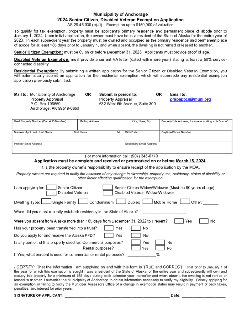 2024 Senior Citizen, Disabled Veteran Exemption Application