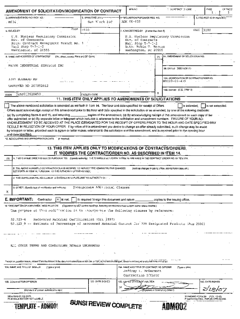 Get the free Amendment of Solicitation/Modification of Contract 0017 ...